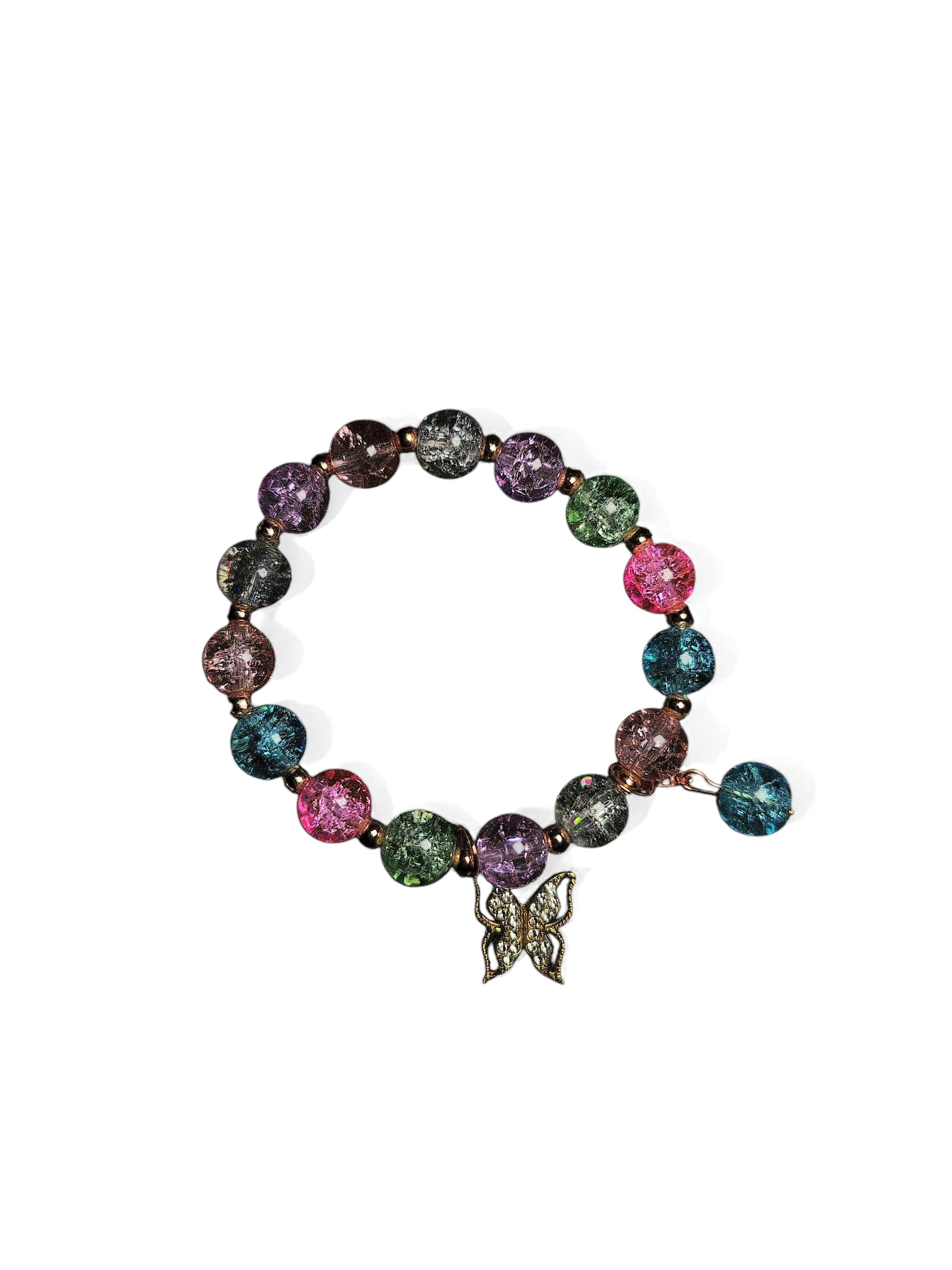 Pookie Box – Crackle Glass Beaded Bracelet (Multicolor) with Gold Heart Diamond Charm